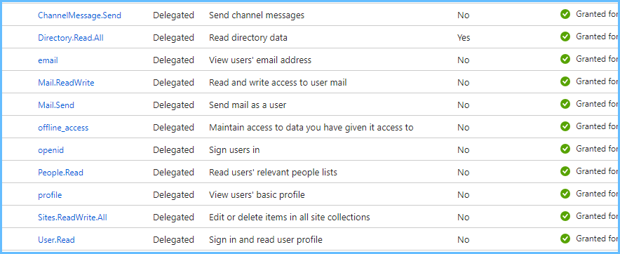 - Check Azure HP Authentication Manager API Permissions to ensure you have all the correct Delegated Permissions and Admin has granted Consent. These New consents are applicable for HP Authentication Manager V3.0 >, OneDrive, SharepPoint, Mailflow and Teams based On Our Hosted Backend Services (Keycloak)