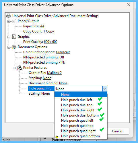Please remember, if your Print plan requires any of the missing functionality, then your workaround option is to use the HP Supported Windows Driver and Print via the Local Area Network, thus bypassing Microsoft Universal Print services.