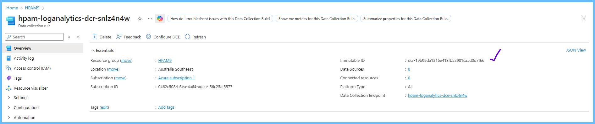 2. Next we need to obtain a copy of the Immutable ID from Data Collection rule