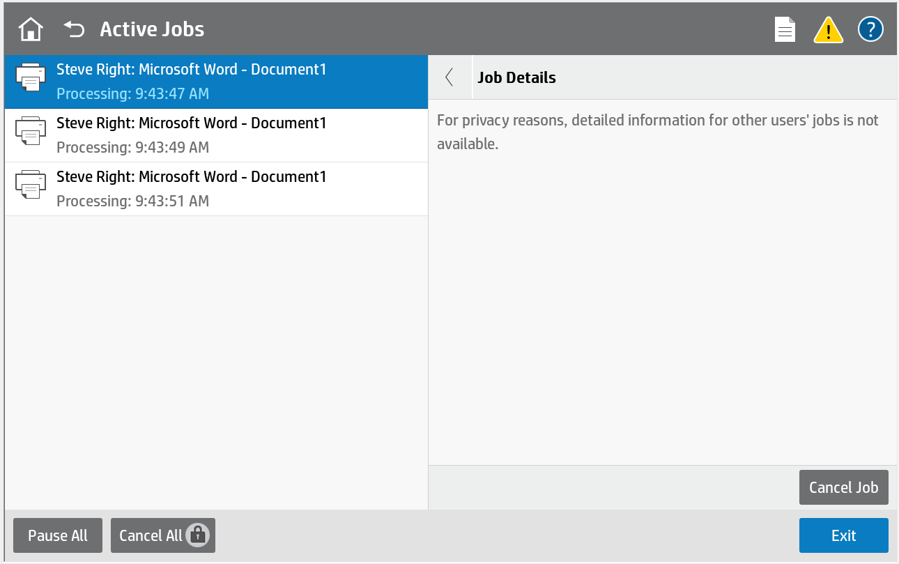 As you may see, this screen shot allows users to cancel Print jobs