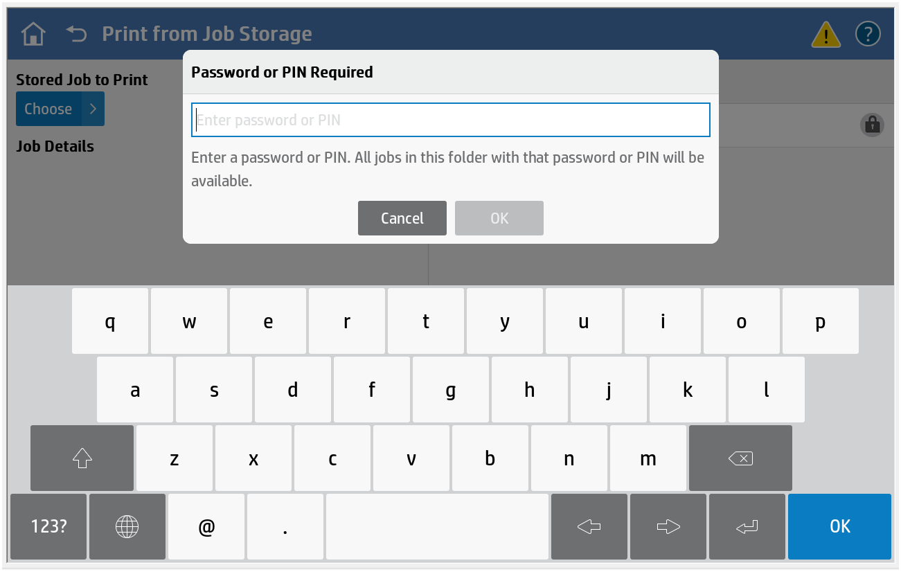 By submitting your print job through our Direct Serviced Printers, you can assign a PIN or password for release. The document can then be accessed via the device’s Print → Print from Storage menu without signing into the console. Simply locate the stored job, authenticate with your PIN/password, and print.